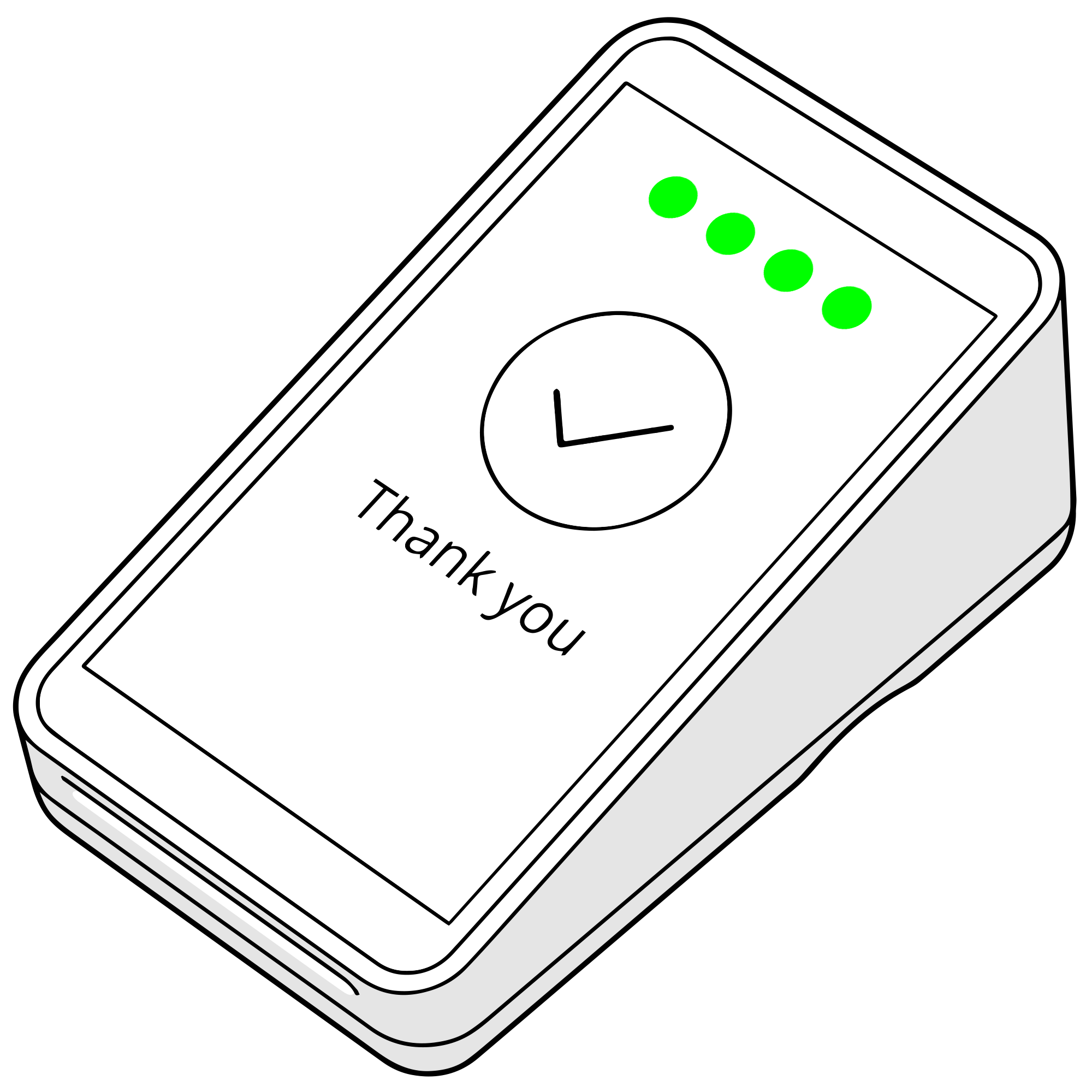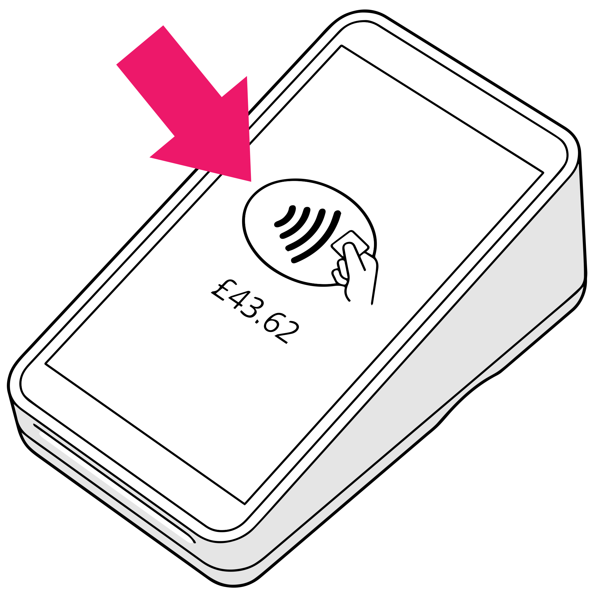 Locate the “active area” of the card reader – typically this is indicated by the contactless payment symbol, which could be on the front, top or side of the reader.